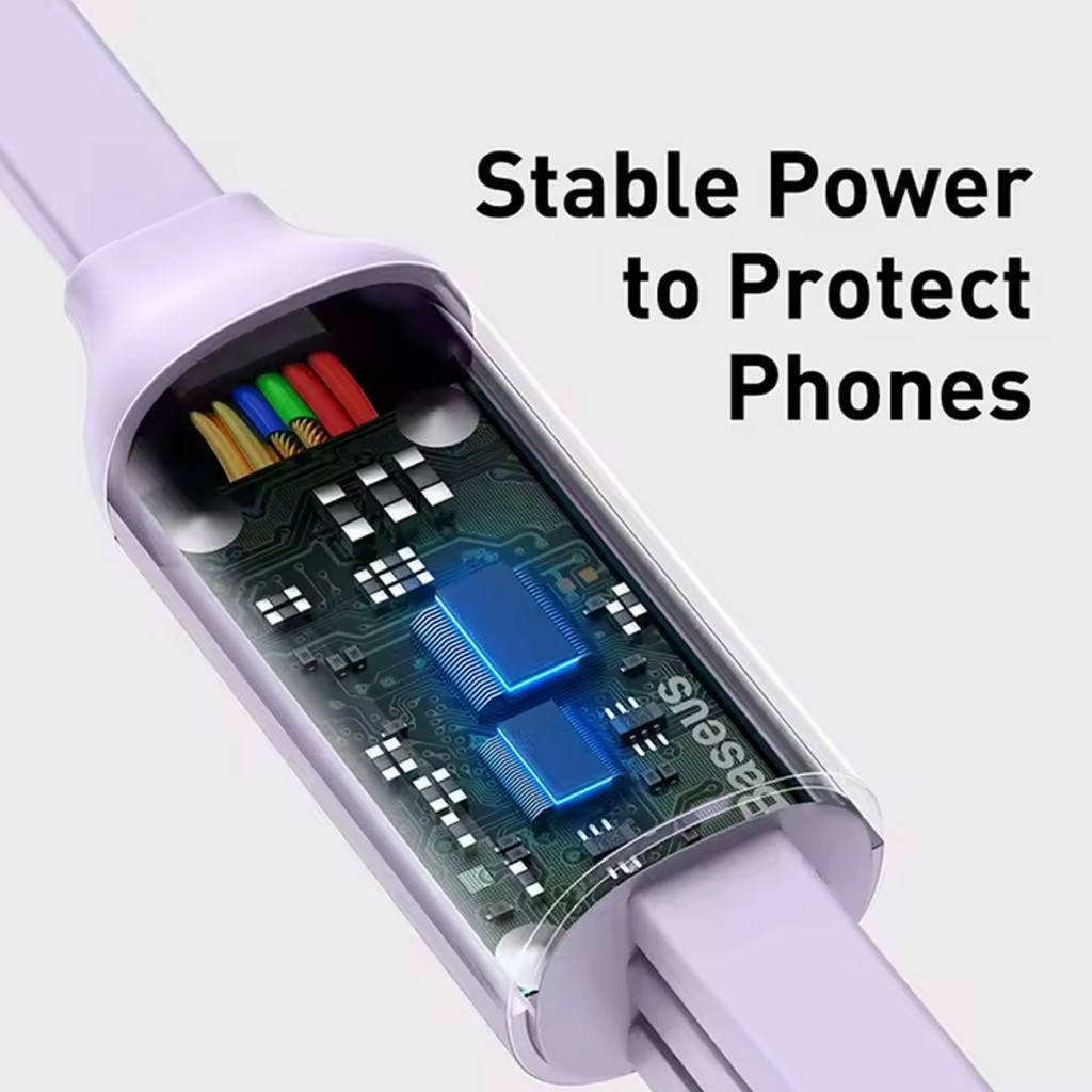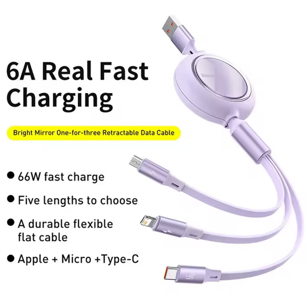 کابل شارژ سه کاره Baseus دارای سه خروجی متنوع است که به تمام گجت های روز دنیا متصل شده و شارژ میکند ؛ این کابل به خروجی Type-C ، Lightning و micro Usb مجهز است که نیاز شما را از حمل چندین شارژر در کیف خود برای مسافرت ، محل کار یا استفاده روزانه برطرف میکند .