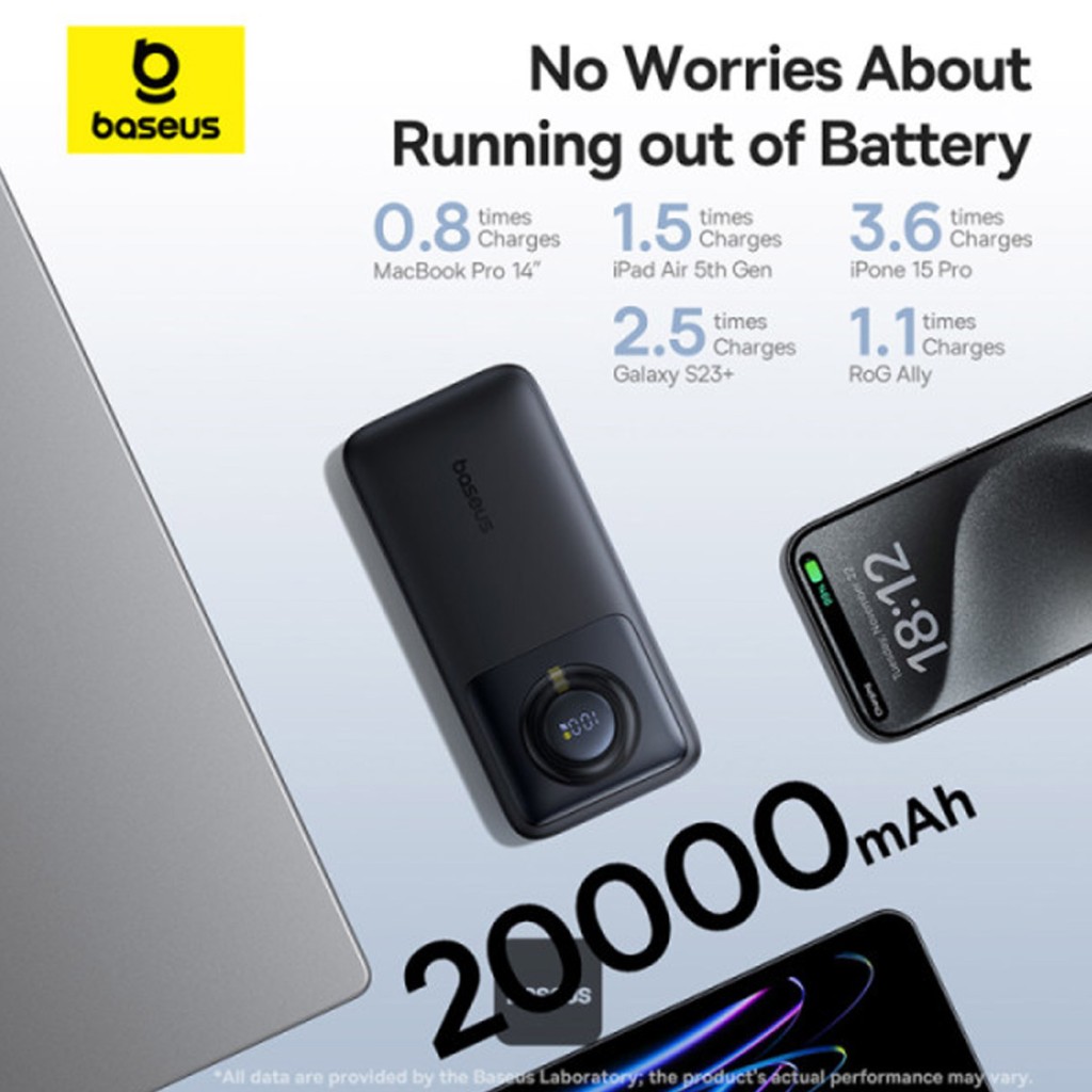 ظرفیت 20000mAh این پاوربانک امکان شارژ چندباره گوشی هوشمند، هدفون بلوتوثی، ساعت هوشمند و تبلت را فراهم میکند. همچنین توان 65W باعث میشود دستگاه های بزرگتر مانند لپتاپ های مک بوک، سرفیس یا اولترابوک ها با سرعت بالا شارژ شوند. این پاوربانک از فناوری شارژ سریع پشتیبانی میکند و با تشخیص هوشمند دستگاه، توان مناسب را ارائه میدهد تا هم سرعت بالا باشد و هم به باتری دستگاه آسیبی وارد نشود.